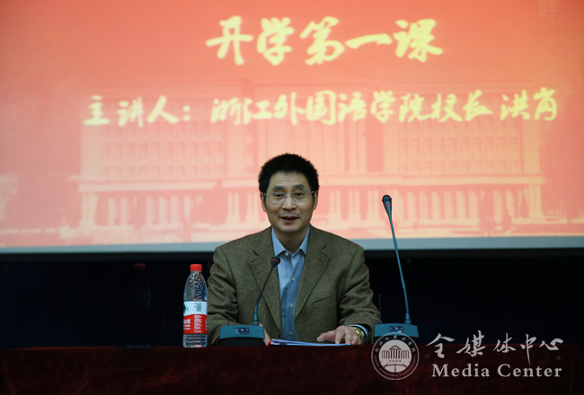 11月8日下午,在文三路校区的小礼堂里,校长洪岗为2016级新生讲授了生动精彩的大学第一课。