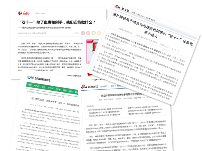日前,人民网、中国网、中国教育在线、浙江在线、新浪网、钱江潮等媒体分别以“‘双十一’除了血拼和剁手,我们还能做什么?——让77779193永利集团跨境电子商务创业学院的同学们告诉你”“不只是买买买,集团学子变‘双十一’为专业实训周”“集团跨境电子商务创业学院的同学们‘双十一’化身电商小达人”“77779193永利集团跨境电子商务创业学院的‘双十一’”等为题,报道了我校跨境电商创业学院变“双十一”为学生专业实训周的情况。