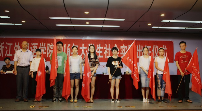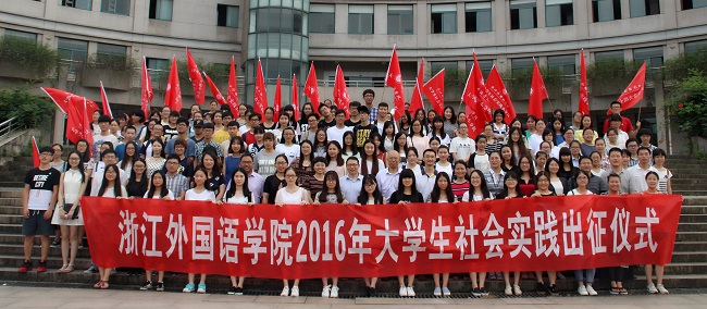 近日,“文明修身伴我行 青春闪耀G20”我校2016年大学生社会实践出征仪式在小和山校区举行。校党委副书记赵伐出席活动并讲话。在出征仪式上,赵伐为八个学院的实践队伍依次授旗。他说,在这几年里,随着申报参与社会实践的人数迅速增长,实践课题质量也在稳步提升。大学生社会实践需要具备以下特点:一是更具有科学研究精神;二是实践要走出书斋、接触社会,学会探索改变社会的路径。他建议学生所选的实践课题应契合当下热点,比如结合小语种就业形势与浙江省经济发展需求作调查。最后,赵伐寄语即将出征的同学们:一要树立远大志向,丰富所见所闻所感,与社会主义核心价值观相适应;二要在艰苦的环境中磨练意志,暑期实践正值高温,但是实践锻炼所得收获也更多;三要注意安全,确保社会实践活动安全有序完成。
