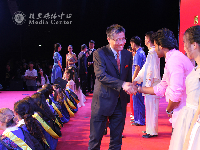 典礼结束后,校领导与演职人员亲切握手,合影留念