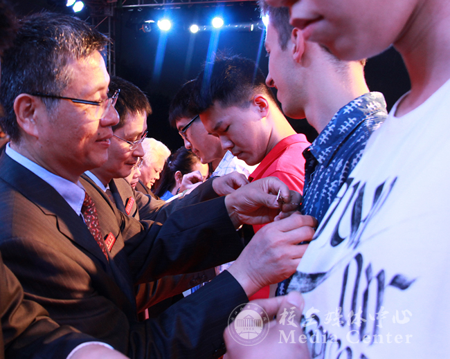 在典礼上,宣勇为新生代表亲手佩戴校徽,标志着2016级新生正式成为集团人,祝福他们在集团开启人生新篇章。