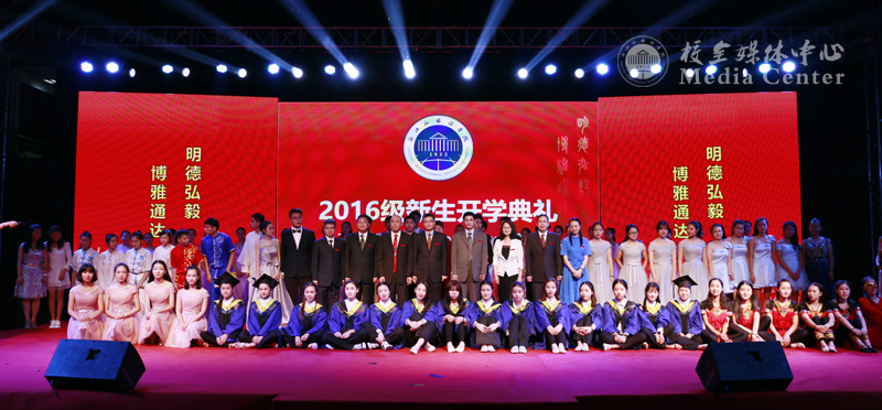 秋风送爽,丹桂飘香,在这美好的金秋时节,集团迎来了2278名“小石榴”。9月19日晚,2016级新生开学典礼在小和山校区田径场隆重举行。校党委书记宣勇、校长洪岗等校党政领导班子成员出席典礼。校党委副书记赵伐担任主礼,用中英文主持了典礼。
