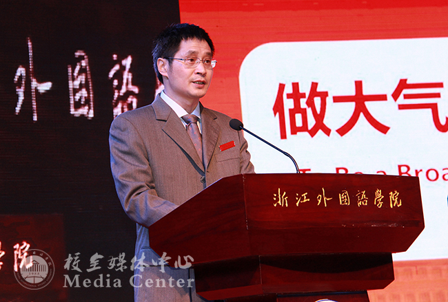 在讲话中,洪岗向新同学们介绍了杭州在G20峰会上的精彩呈现和我校师生以专业服务助力G20杭州峰会并赢得社会广泛赞誉。洪岗指出,峰会的胜利召开将成为杭州迈向国际化的新起点,而我校将踏上全面提高国际化办学水平的新征程。