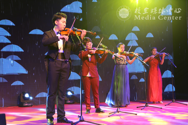 典礼的第三篇章是文艺表演环节,教师、老生、新生三人同台主持,舞蹈、快板、外文歌曲串烧、器乐合奏、武术表演、阿卡贝拉……绚丽的舞台、美妙的旋律、灵动的舞姿、婉转的歌喉、生动的语言……集团让不同的音符、不同的旋律、不同的文化、不同的语言,在这里汇合,却显得分外融洽与和谐!