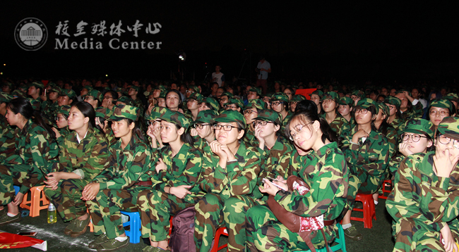整个典礼历时两个小时,秋风时时带来阵阵细雨,领导、老师、教官、新生以及所有的演职人员都纹丝不动,没有使用雨具,反而被此情此景深深感染着。