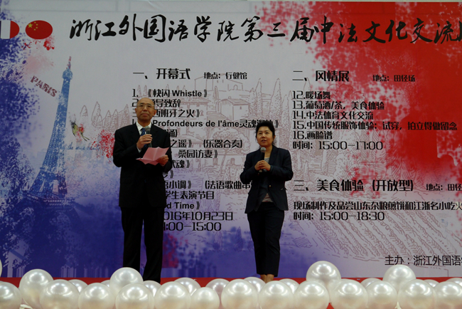 10月23日下午,由西语学院主办的学校第三届中法文化交流周活动精彩启幕。校党委副书记赵伐出席开幕式并对国际文化交流活动给予了热情指导。开幕式吸引了小和山高教园区兄弟高校的师生前来观摩。