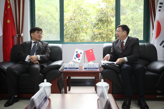 曹仁清感谢总领事馆一直来对学校的支持和帮助。他简要介绍了学校的发展历史,结合“十三五”期间建设国际化特色高校的办学目标,对加大韩国语专业与韩国同行、韩国社会更深层次、更具实质性的交流提出殷切希望。