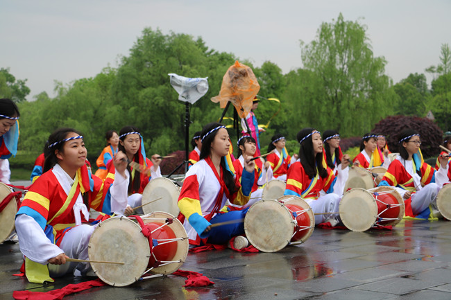 东语学院韩语系同学们为与会专家表演了四物乐