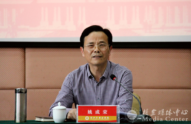 5月25日下午,学校举行新一轮办学思想大讨论动员大会暨报告会。本次大讨论的主题是“推进国际化特色高校建设”。校党委书记姚成荣作动员讲话。校长洪岗主持会议。省教育厅外事处处长、港澳台办主任舒培冬作专题报告。