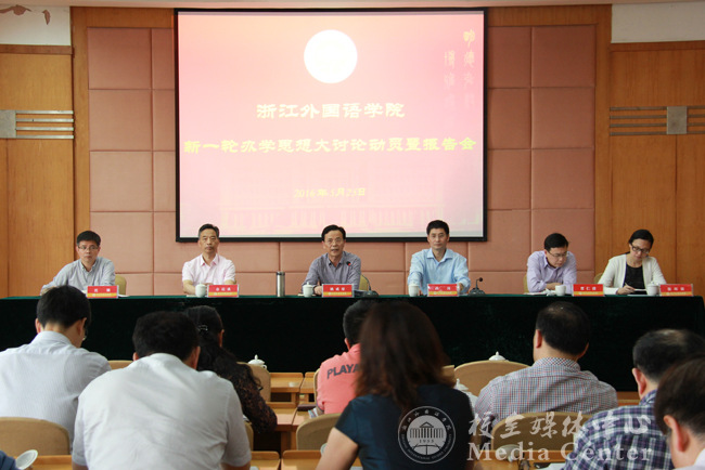 就开展大讨论的必要性,姚成荣强调,大讨论是贯彻中央开放发展新理念,顺应世界高等教育发展趋势的必然要求。国际化是世界高等教育发展的大趋势,国际化办学已经成为世界大学发展的新理念。面对全面推进开放发展战略的新形势新要求,学校作为一所以培养国际化应用人才为主要使命的高校,理应要主动积极有所作为。其次,大讨论是深入贯彻省委书记、省长重要批示精神,抓住浙江省建设国际化特色高校重要机遇的客观要求。省委书记、省长在批示中明确希望我校在新的办学征程中,解放思想,乘势而上。作为一所新建的外语本科高校,如何推进教育国际化,提升教育国际化的发展水平,这是学校在新的历史阶段所面临的一个重要而紧迫的战略任务。我们开展办学思想大讨论,聚焦国际化特色高校建设,就是要加快实现学校发展战略目标。国际化特色和外语特色鲜明,虽然两者的提法不同,但两者之间是紧密联系、内在统一的关系。我省决定启动实施浙江省国际化特色高校建设,学校要牢牢抓住这一重要的发展机遇。要抓住机遇,这就要进一步解放思想,顺势而为,努力开拓办学思想教育理念的新境界。第三,大讨论是“十三五”时期学校推进教育国际化发展的迫切要求。这几年来,学校在教育国际化方面的工作取得了长足的进展,总体趋势向好,但同时也存在着明显的短板。今年是“十三五”发展的开局之年,也是全面深化学校综合改革,进一步彰显特色提升质量的关键之年。这次大讨论,事关学校未来五年甚至更长时间的发展。大讨论就是要进一步凝聚广大师生员工思想共识,要进一步破除制约学校国际化发展建设的思想观念和体制机制障碍。拉高标杆,补足短板,以做亮特色,提升品质。