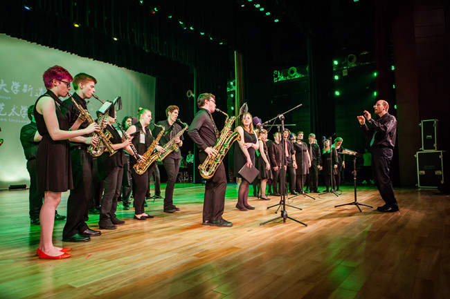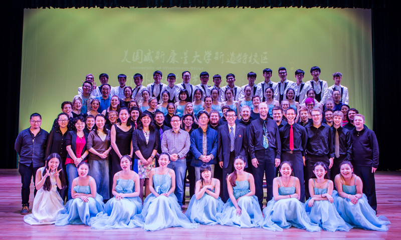 近日,美国威斯康星大学斯道特校区蓝魔鬼爵士乐团、室乐合唱团来我校交流演出。校党委副书记骆伯巍出席并观看了演出。