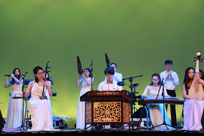 我校艺术学院精彩演绎了民乐合奏《苏堤春晓》和群舞《草原茫茫》,一南一北,一婉约悠扬,一豪放帅气,展现了我国多民族的特色文化。