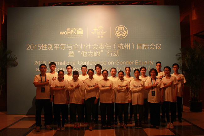 近日,由联合国妇女署、浙江省妇联、杭州市人民政府联合主办的2015性别平等与企业社会责任(杭州)国际会议暨“他为她”(“HeForShe”)行动在杭州圆满落幕。这是联合国妇女署第一次与地方政府联合举办的针对“性别平等与企业社会责任”的专题会议,大会呼吁社会各界行动起来,共同为性别平等而努力。我校国际志愿者受邀参与,为此次国际会议提供全程志愿服务。