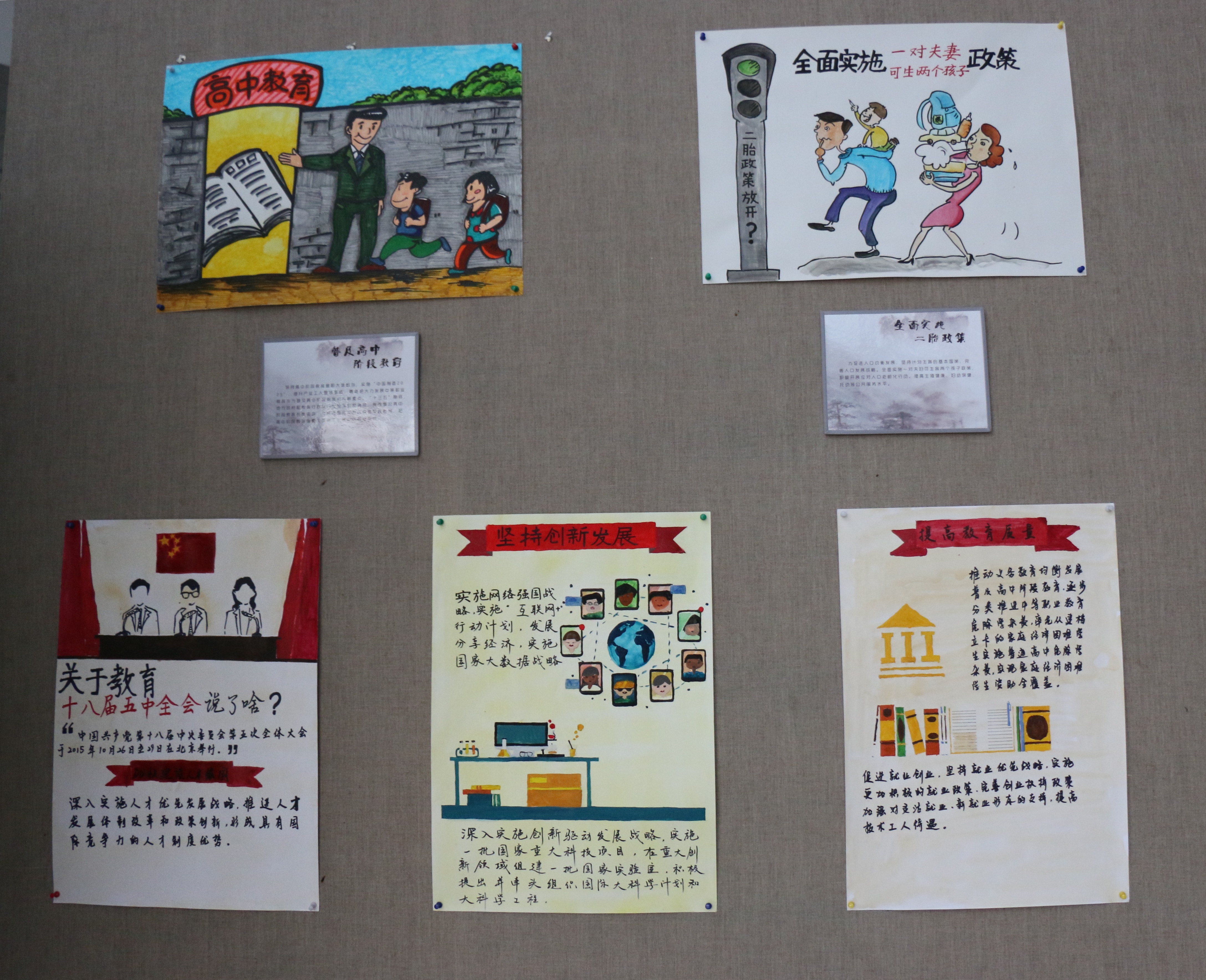 11月12日,艺术学院党总支举行“画说五中全会”书画交流活动。活动以书法、漫画、插图等为载体,图文并茂的融入创新、协调、绿色、开放、共享等5大理念,形象生动地解读和展示了党的十八届五中全会精神实质。 据悉,“画说音动系列”活动是艺术学院着力打造的特色思想政治工作之一。该活动结合学生专业特色,紧扣时事热点题材,以书画、话剧、歌舞等师生耳熟能详的方式,引领广大师生以主人翁的姿态主动学习、思考党和国家发展的大事,与祖国共情同梦。