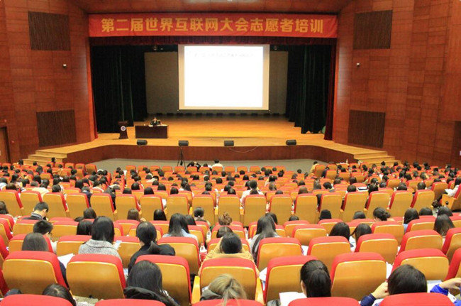 近日,第二届世界互联网大会志愿者培训在我校小和山校区追梦堂举行,来自全省各地的500余名世界互联网大会志愿者参加了培训。 培训会上,由中央网信办和团省委邀请的6位主讲嘉宾介绍了互联网大会会务背景、首届情况与志愿者服务工作情况等相关内容,并分享了如何成为一名优秀的志愿者的心得体会。 据悉,这是继去年首届世界互联网大会志愿者培训之后,第二次在我校举办世界互联网大会志愿者培训工作。今年,我校将有180余名志愿者为本届世界互联网大会提供志愿服务。