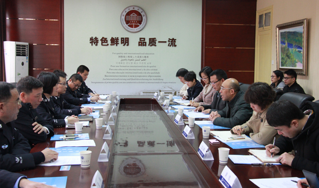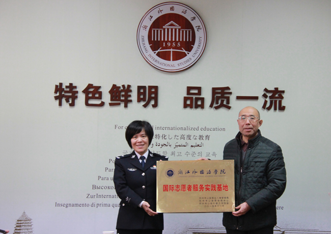 赵伐介绍了我校基本情况和国际志愿者服务各项国际大型活动的经历,就我校国际志愿者为公安系统提供外语翻译服务表示支持,对三个单位成为我校国际志愿者实践基地表示欢迎。随后,赵伐代表学校与杭州市公安局签订合作协议,并授予国际志愿者实践基地铜牌。