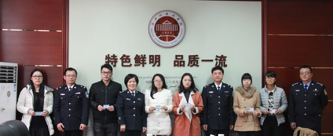 杭州市公安局为我校国际志愿者代表发放杭州市公安社会翻译员证。