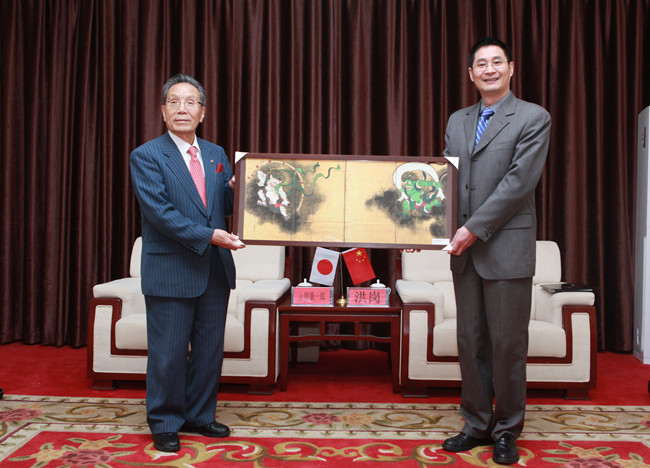 洪岗感谢山岡校长专程赴会,对其85岁高龄仍活跃在国际交流与合作的前沿表示赞赏,希望两校能积极交流,互通优势资源,将合作不断引向深入。