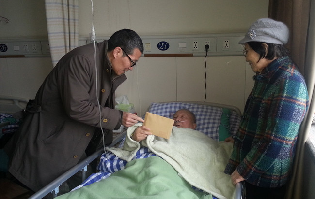 新春佳节来临之际,校党委副书记骆伯巍代表学校党政领导班子前往新华医院亲切看望慰问困难老党员孙俊。 骆伯巍鼓励孙俊同志要保持乐观情绪,配合医生,静心修养,早日康复,同时为他送去了省老干部局发放的困难补助金和学校的关爱与祝福。 孙俊同志1931年出生, 1953年入党,先后参加过抗美援朝战争和一江山岛战役。1991年从我校纪委副书记岗位上离休。