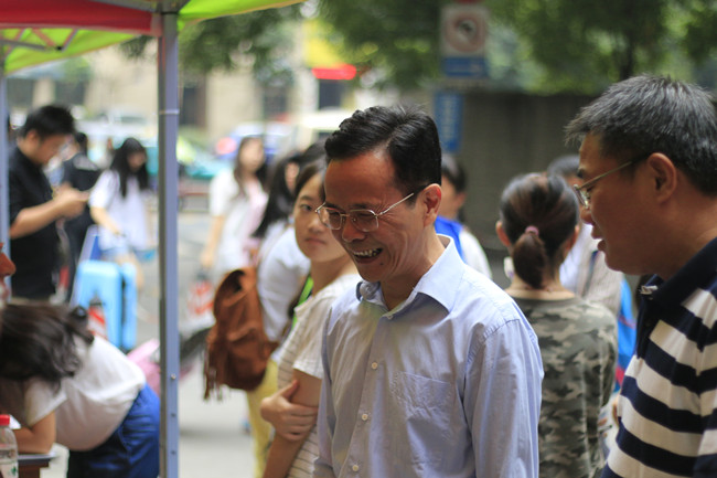 校党委书记姚成荣、校长洪岗、副书记赵伐、副校长赵庆荣亲临迎新现场指导工作,并与新生亲切留影