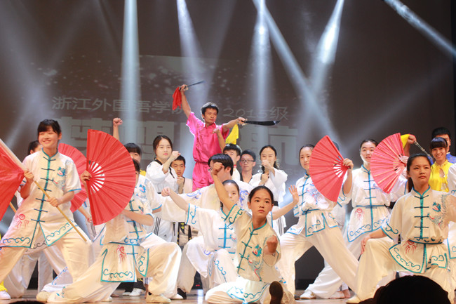 晚会分成“明德”“弘毅”“博雅”“通达”四个篇章,以振奋人心的灯光秀以及New Dancer街舞社带来的街舞秀《shake》开场。整场晚会节目丰富多彩,现场高潮迭起、气氛欢乐。有展示我校语言特色的多语言歌曲联唱《connecting》,有展示我校艺术建设成果的校十佳歌手歌曲联唱、现代舞《泡沫》,有带领新生领略杭州独特魅力的舞蹈《西湖千古情》,有展示学生独特精神面貌的话剧等。曾在国际国内获得多次荣誉的校武术队更是为新生带来精彩的武术表演,将晚会推向了高潮。