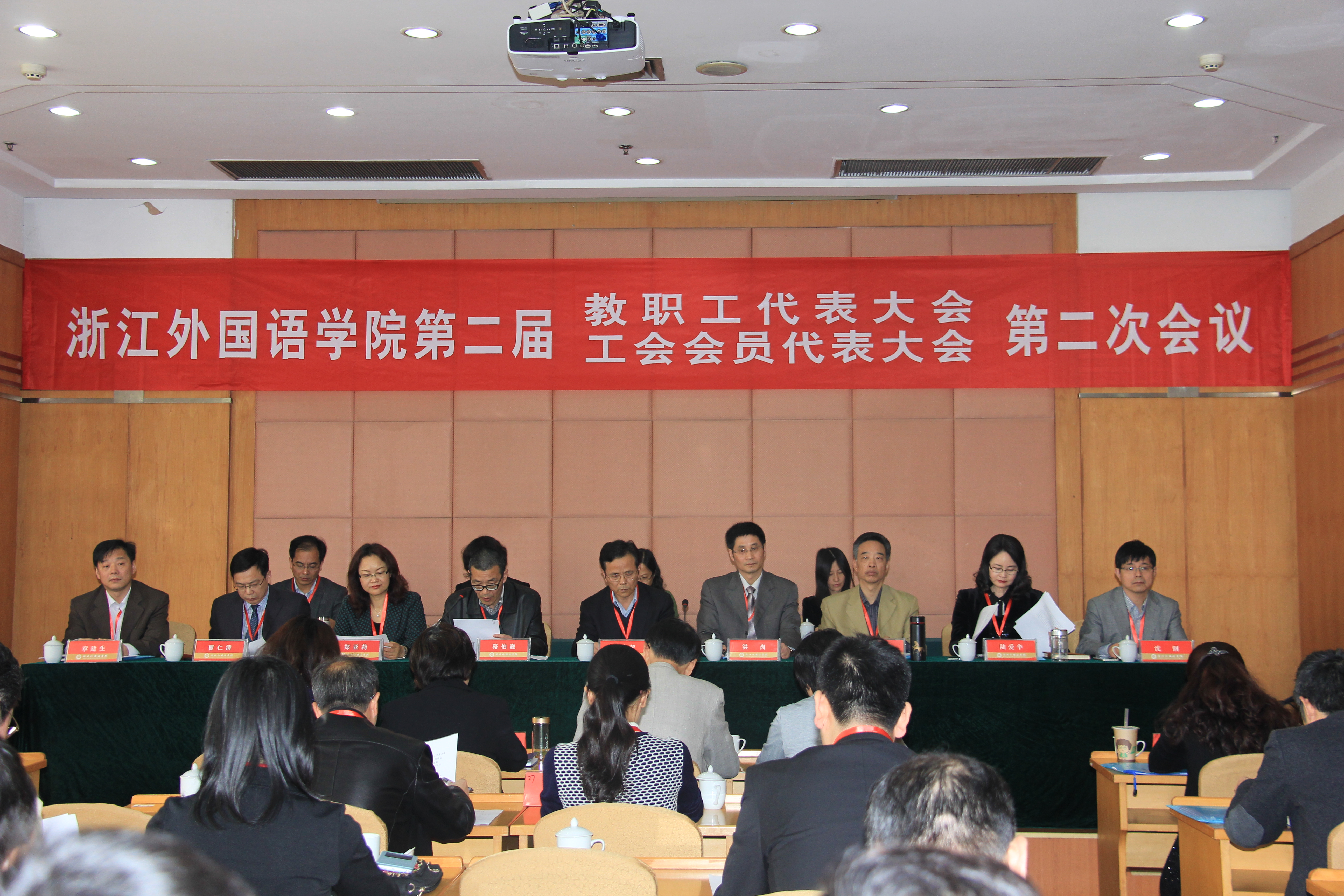 校长洪岗代表学校向大会作学校工作报告。洪岗从人才培养特色逐步显现;学科建设和科研工作进展有序;师资队伍国际化水平明显提升;国际交流与合作继续拓展;社会服务工作良性发展;校园文化建设呈现新气象;办学条件得到进一步改善;校内综合改革推进有力;校园保持和谐稳定等方面全面回顾和总结了一年来学校各项事业取得的成绩。同时,洪岗还客观地分析了高等教育发展新常态下学校工作面临的新形势、新挑战。