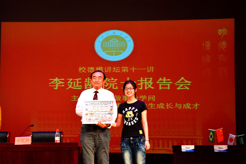 5月14日晚,小和山校区追梦堂济济一堂。俄罗斯科学院院士、文史学部委员、名誉博士,俄罗斯作家协会会员,俄罗斯阿穆尔州作家协会副主席,我校特聘教授李延龄院士做客德雅讲堂第十一讲,为在场师生作题为《做人做事做学问——谈谈大学生成长与成才》的报告。