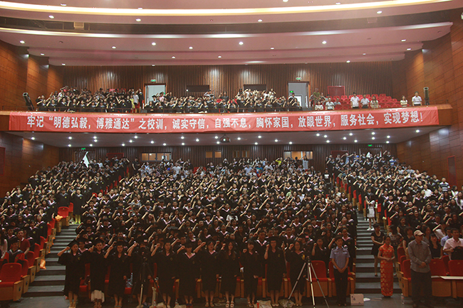 “牢记“明德弘毅,博雅通达”之校训,诚实守信、自强不息、胸怀家国、放眼世界、服务社会、实现梦想!”2015届毕业典礼在全体毕业生们铿锵有力的宣誓声中落下帷幕。