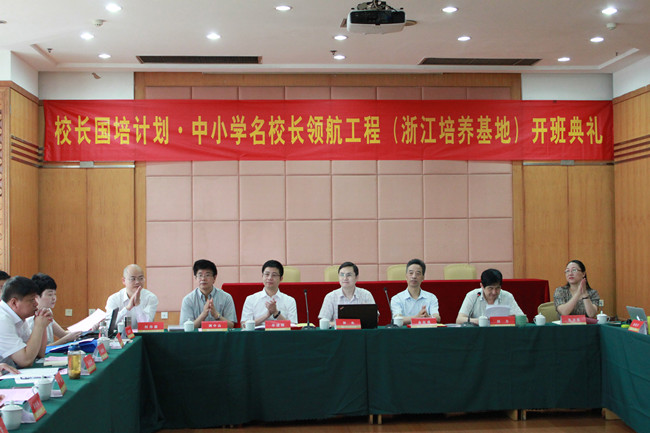 6月15日上午,教育部中小学名校长领航工程(浙江基地)项目在我校正式启动。副校长金运成,教育部中小学校长和幼儿园园长国家级培训项目管理办公室常务副主任郭垒,省教育厅师范处副处长牟凌刚以及省师干训中心相关负责人出席了开班典礼。