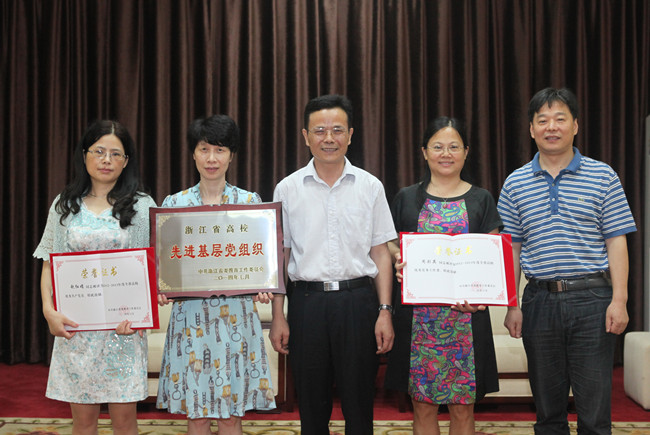 为激发正能量,唱响主旋律,激励基层党组织和广大党员更好地发挥模范带头作用,今年5月份以来,学校组织开展了加强党的建设先进集体和先进个人评选活动。 经学校推荐、专家组评选、省委教育工委研究,我校社会科学教研部直属党支部获全省高校先进基层党组织;中国语言文化学院赵红娟教授获全省高校优秀共产党员;英语语言文化学院党总支书记周彩英获全省高校优秀党务工作者。 7月2日,校党委书记姚成荣为获奖组织和个人颁发了证书。党委委员、组织部统战部部长章建生陪同颁奖。