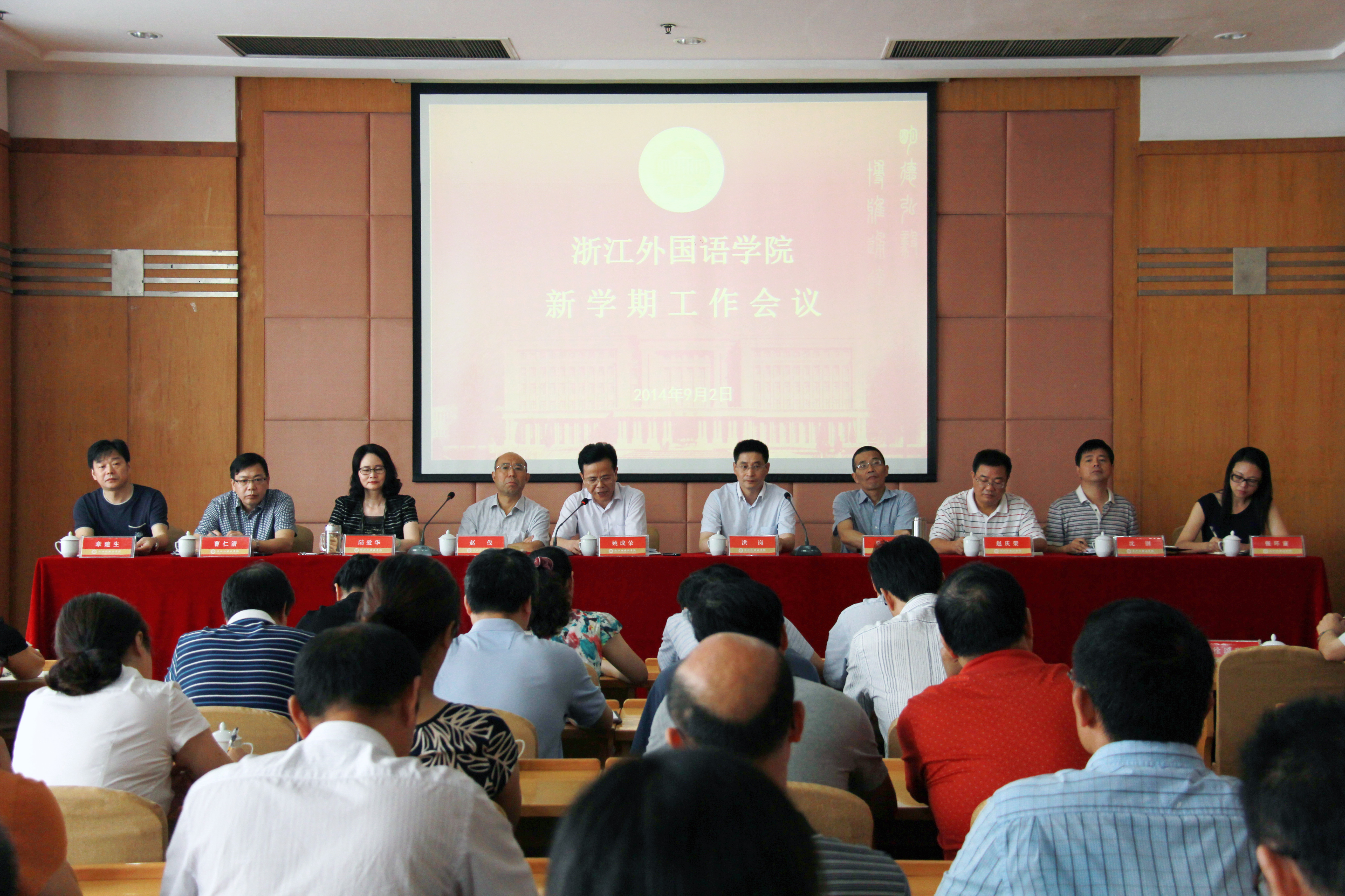 9月2日上午,学校召开新学期工作会议,回顾总结上半年学校的主要工作,安排部署下半年工作。校领导姚成荣、洪岗、赵伐、骆伯巍、陆爱华、赵庆荣、曹仁清、沈钢、章建生、张环宙,近期退下来校级老领导、全体中层领导干部、正高级专业技术人员、各民主党派的主要负责人、教代会执委会成员、党代表出席会议。校党委书记姚成荣主持会议。