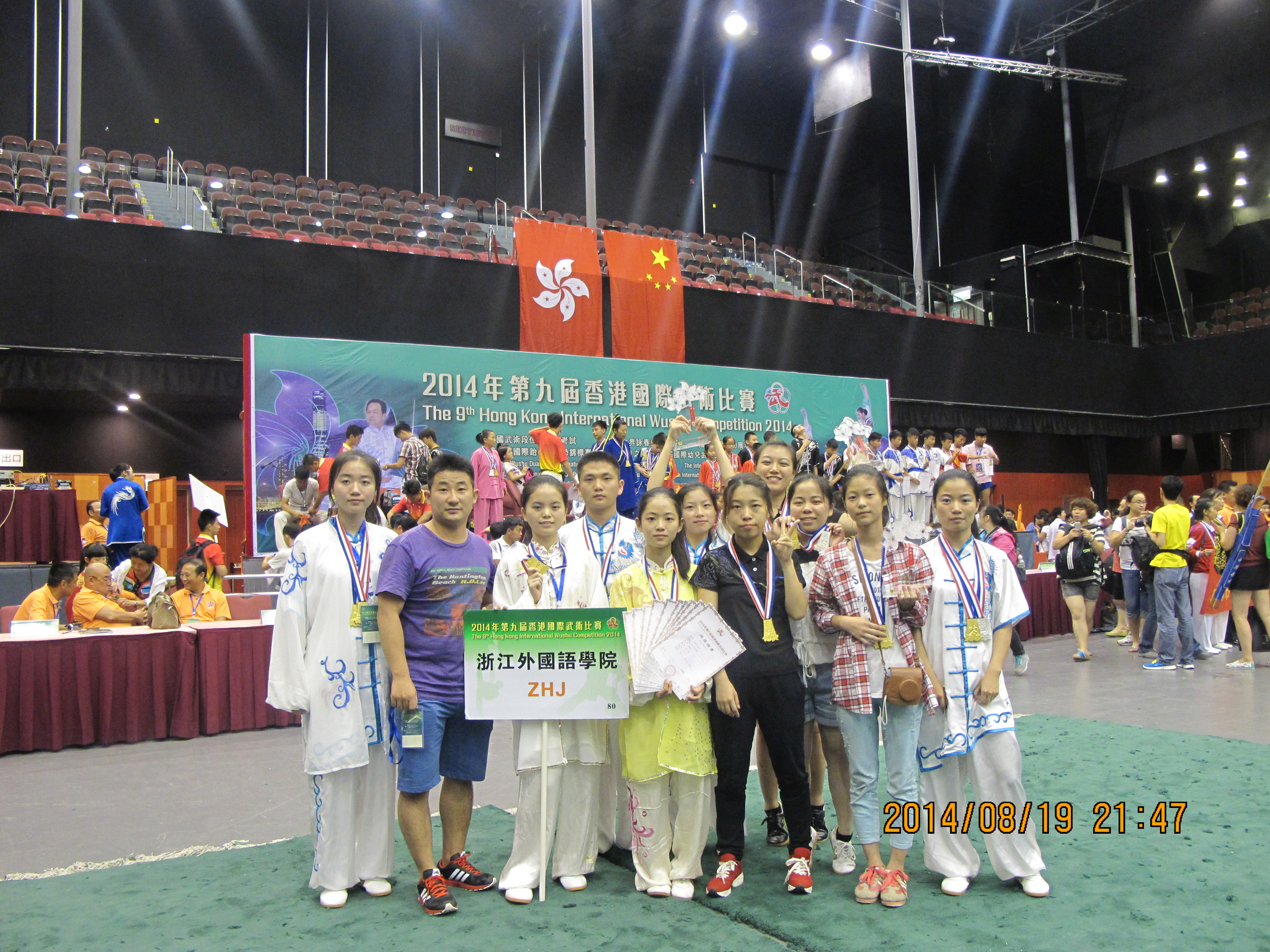 暑假期间,我校武术队一行10人应邀参加了由香港主办的第九届香港国际武术比赛。 来自美国、希腊、哥伦比亚、俄罗斯和中国大陆、港澳台等50多个国家或地区的1300多名选手参加了本次比赛。在校领导和各部门的支持下,体育教研部吴炜、李志良老师带领我校武术队9名队员,参加了青年组的比赛。在激烈的比赛中,队员们们发挥了很高的水平,最终荣获11枚金牌、6枚银牌、1枚铜牌的佳绩。 此外,李志良老师被评为最佳教练员,2012级美术师范一班的曾瀚江同学获最佳运动员称号。