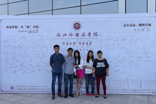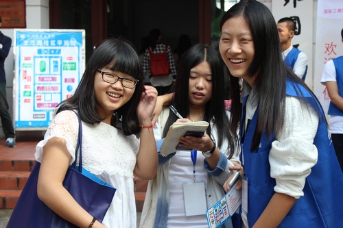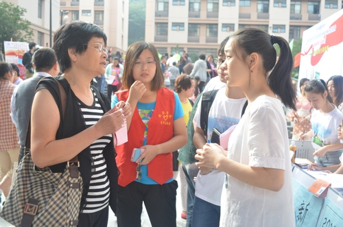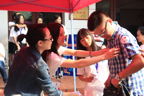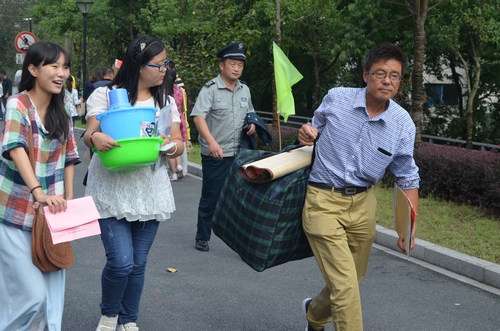 清晨六点半,平日里本该寂静的校园里却已人声鼎沸,格外朝气蓬勃。天空并没有像预计的那样来场淅淅沥沥的小雨,而是一片晴朗。微风吹得小路两旁的彩旗迎风飘舞,忙忙碌碌的身影穿梭于学校的各个角落,迎新报到点、新生心愿墙、教授风采展、后勤服务点……一切都井然有序地进行着,为了同一个目标——迎接2014级新生的到来。