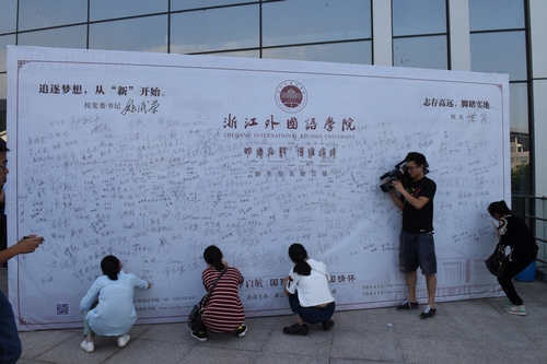 怀着兴奋与忐忑的心情,新同学们带着父母的期盼和朋友的祝福,带着对未来四年大学生活的美好憧憬,带着心中的梦想,步履坚实地踏进集团的大门。迎接他们的,是穿着白T恤蓝马甲热心引导的志愿者,是精心准备的心愿墙与迎新点,是可爱的学姐与亲切的学长,是和蔼的老师与温馨的问候。美好的大学生活崭新而不可预见,亲爱的新生们,放下背包,张开双手大胆迎接你们美好的大学生活吧!