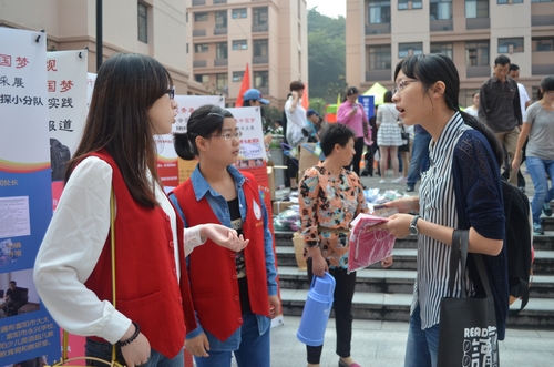 白T恤、小马甲,醒目的工作牌是他们的标志,温馨的话语、贴心的帮助、灿烂的笑容是他们的通行证。他们活跃在校园各处,引领新生、帮扛行李,他们井井有条;答疑解惑、排忧解难,他们认真负责。他们,就是集团美丽的风景线——青年志愿者。他们有着最温暖的笑容和最诚挚的心意,他们以身体力行,告诉学弟学妹们,要懂得奉献、懂得分享、懂得关爱。