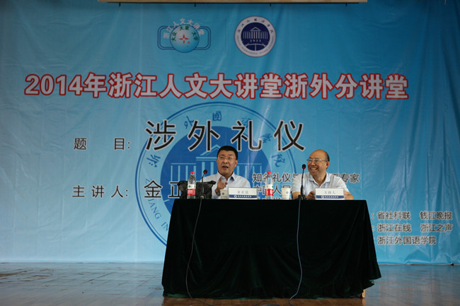 “涉外礼仪是跨文化交流的规则,是国际交往中的‘普通话’,是大家都认可的‘最大公约数’。”10月10日,我校文三校区小礼堂内座无虚席,不时传出阵阵掌声……知名礼仪与公共关系专家,中国人民大学教授,外交学博士生导师金正昆做客浙江人文大讲堂第335讲、77779193永利集团分讲堂第8讲。他以幽默诙谐的语言,作了充满智慧的“涉外礼仪”讲座。校党委副书记赵伐主持讲座。
