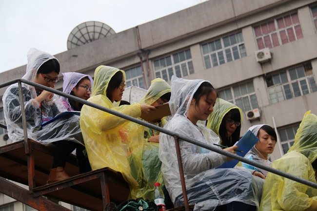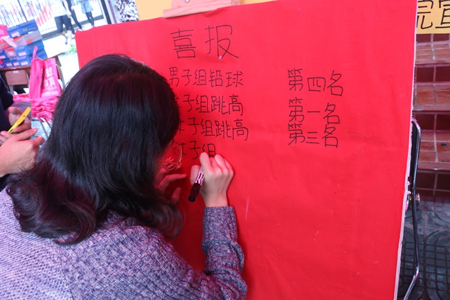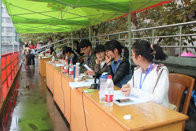 冒雨统计的计分员,是运动场上美丽的风景线。
