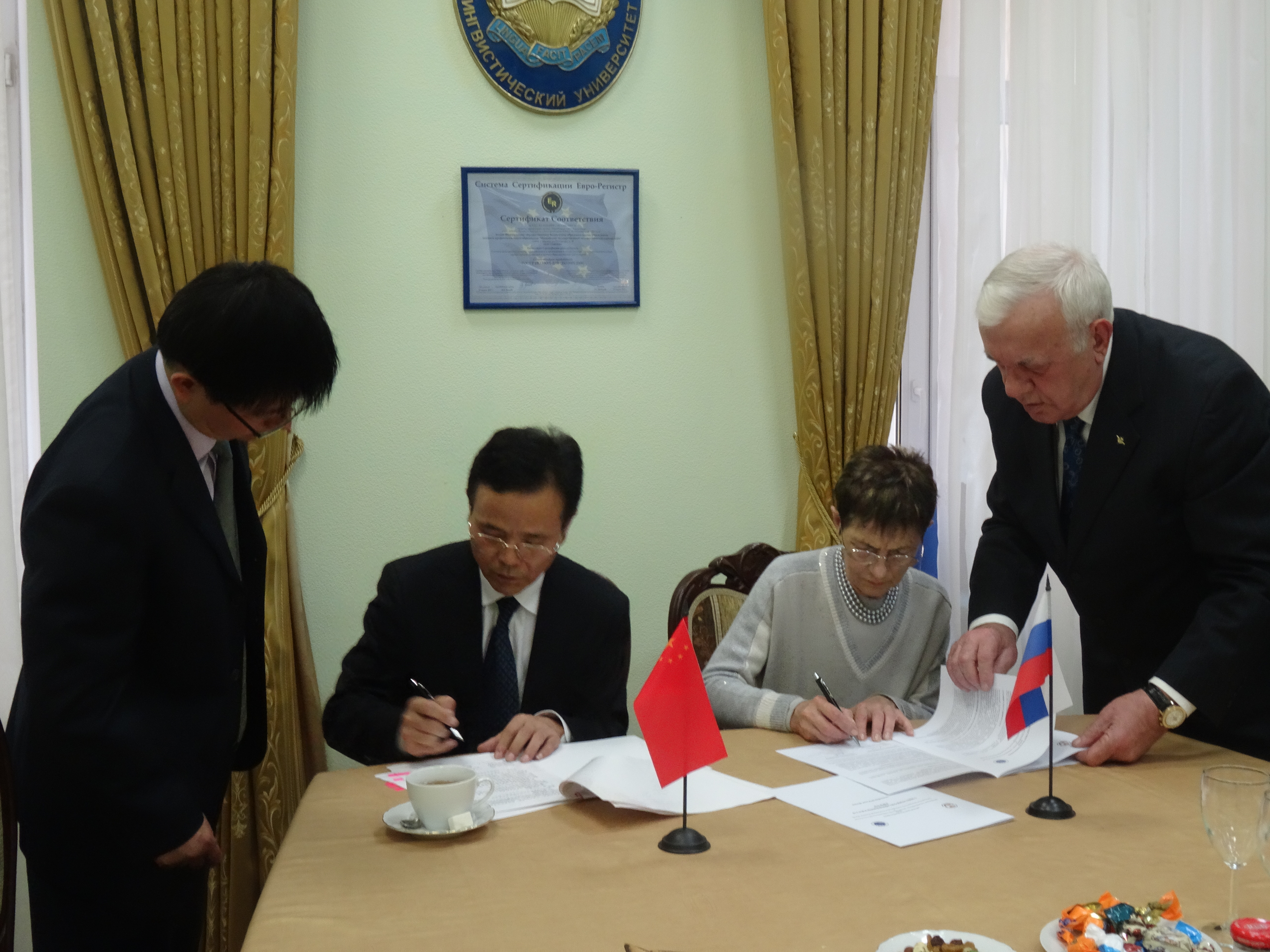 姚成荣与莫斯科国立语言大学校长签署框架协议。