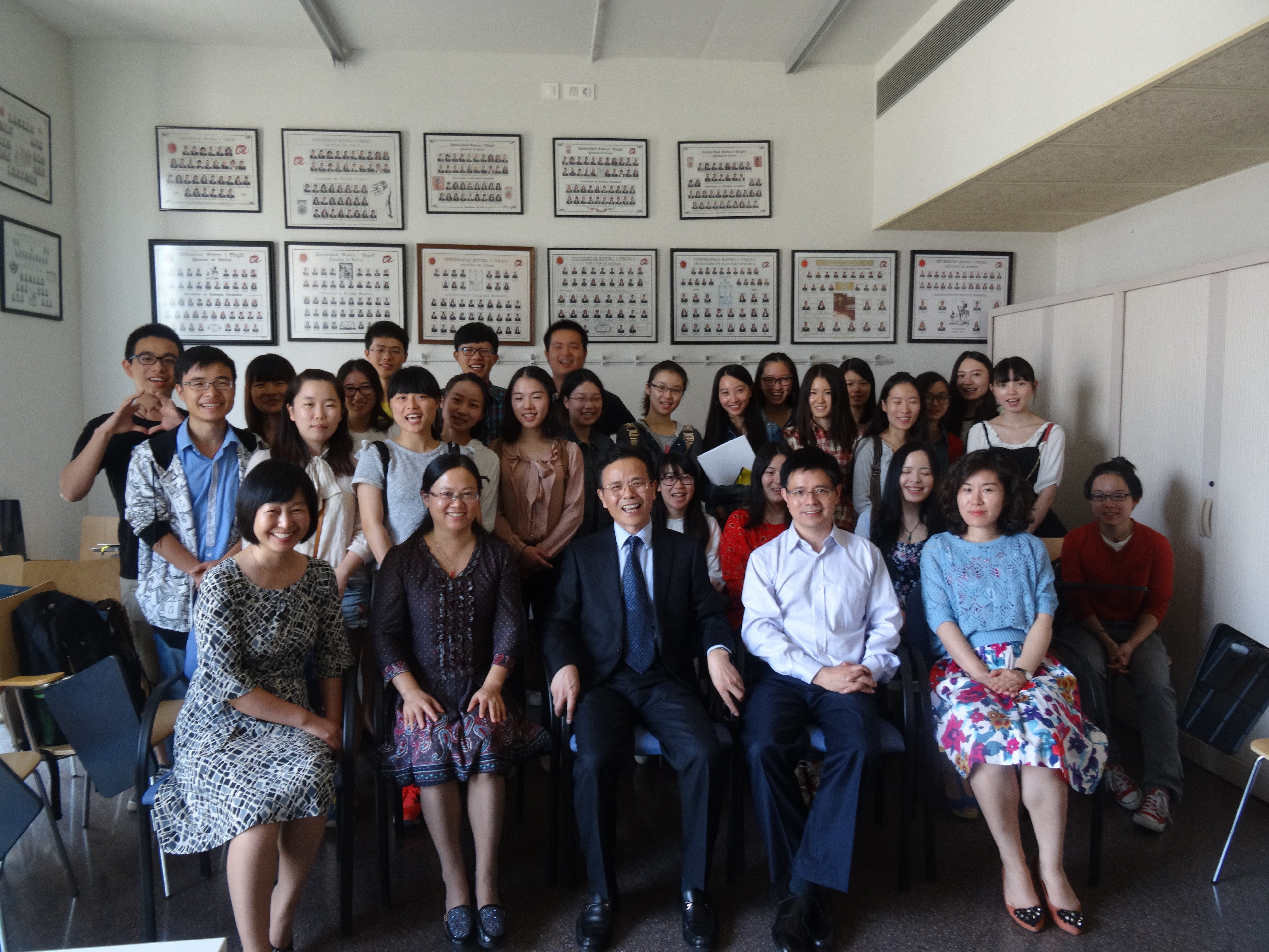 在西班牙期间,团组访问了康普顿斯大学与罗维拉·维尔吉利大学,双方就学生联合培养、教师互派等进行了深入商谈,并签署了校际协议。姚成荣还专程看望了在罗维拉·维尔吉利大学留学的25位欧亚学院西语专业师生,并与大家座谈,勉励他们要珍惜机会,早日学成。