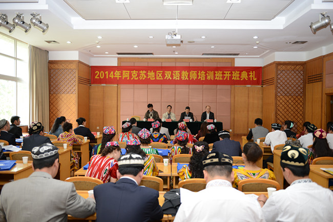 4月22日,教育厅委托我校承办的新疆阿克苏地区双语教师赴浙实习培训班开班。副院长、省师训干训中心主任金运成,省教育厅师范处调研员李敏强,省师训干训中心副主任周中山,及杭州市6所实践基地学校校长等出席了开班仪式。 金运成对阿克苏地区双语教师的到来表示欢迎,并给参训学员提出了要求:要充分认识培训的重要性;要以“教师培训师”的要求来提高自己;要积极参与,广泛交流;要转变角色,遵守纪律。 李敏强要求各相关单位要认真履行职责,按照实施方案做好相关工作;鼓励各位学员要珍惜机会、认真学习。