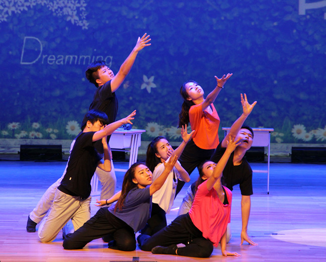 闭幕式上,同学们以寝室为单位表演了丰富多彩的节目,展示了集团学子温馨的寝室生活,展现了同学们多才多艺、积极向上的精神风貌。欧亚语言文化学院和教育科学学院的学生分别表演了心理剧和“寝”歌大赛的获奖歌曲。意大利留学生则表演了意大利童话剧,诉说了他们在集团留学生公寓的生活点滴。由学生宿舍管理员阿姨自编自导的广场舞《舞蹈地带》和由全校辅导员表演的反映学生辅导员生活的情景剧《爱,因为在心中》把晚会推向了高潮,现场气氛十分热烈。