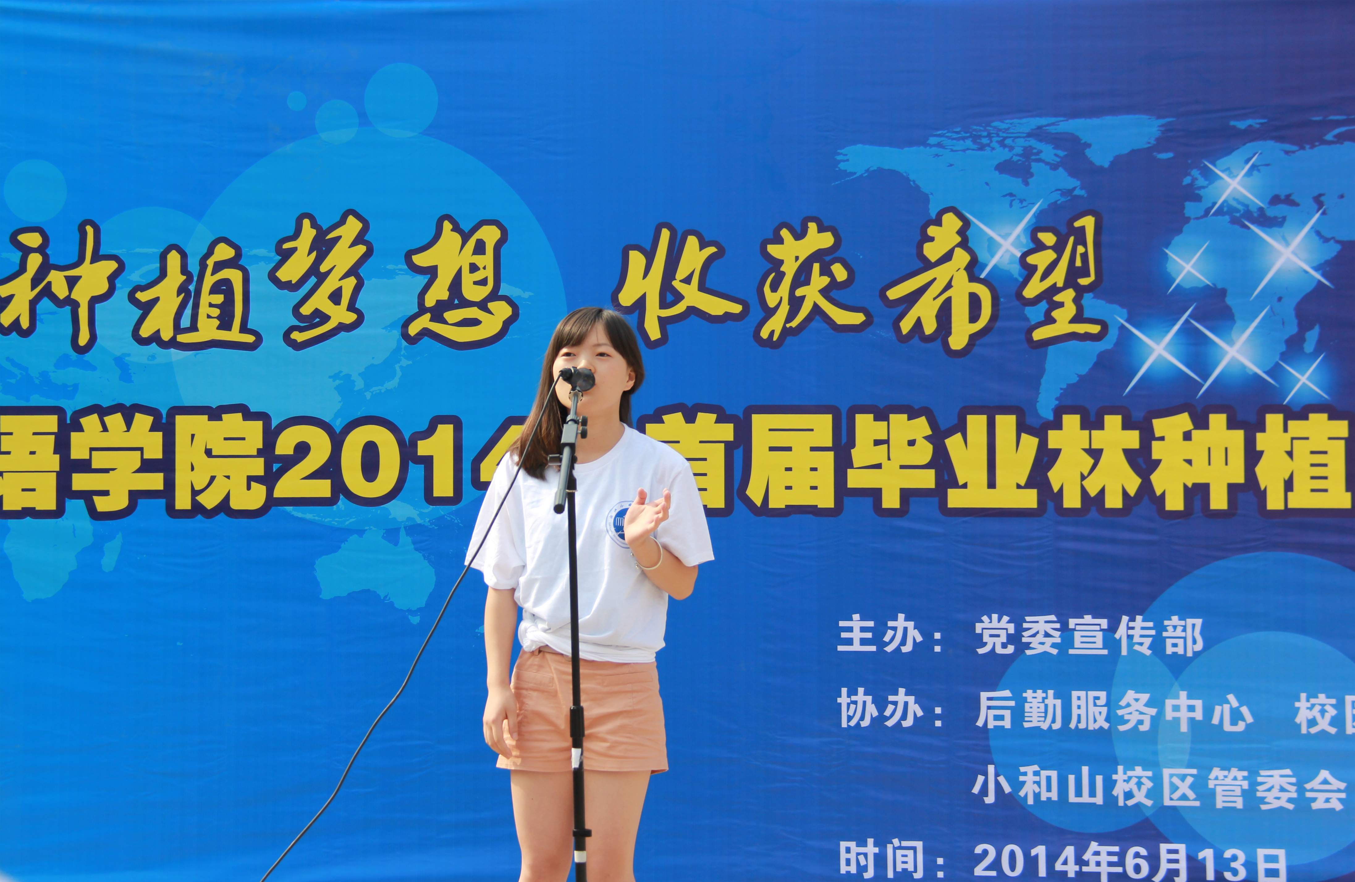 英语语言文化学院陈亚萍代表毕业生用纯正的英语谈了自己的体会和感想,我们把对母校和老师的感谢、祝福和这些桂花树种在一起,让这些树伴随着我们茁壮成长。现在,我们一起种植梦想,将来,我们一起收获希望,回报母校。