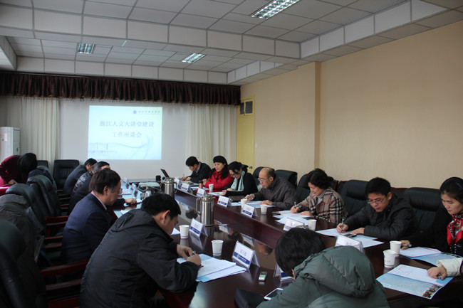 1月14日,浙江人文大讲堂建设工作座谈会在我校召开。省社科联党组书记郑新浦,浙江传媒学院党委书记、社科联主席奚建华,浙江科技学院社科联主席胡浙平和我校党委副书记赵伐等出席了会议。省社科联副巡视员周鹤鸣主持会议。