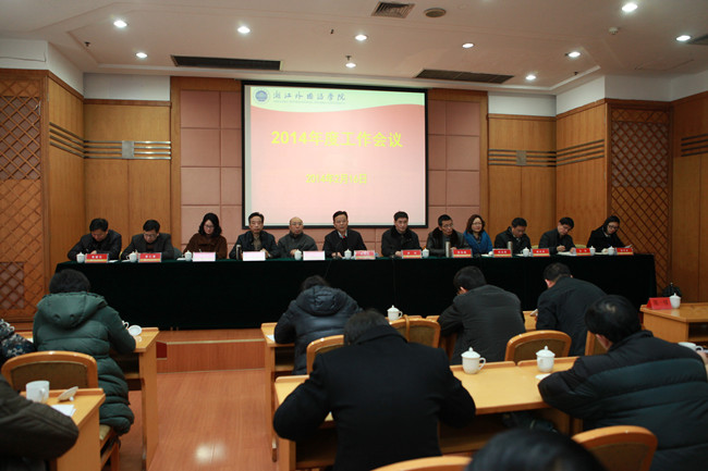 姚成荣指出,2014年是全面贯彻落实学校第一次党代会精神的开局之年,也是全面完成“十二五”规划目标任务的关键之年。今年学校工作的总体要求是:以邓小平理论、三个代表重要思想、科学发展观为指导,认真贯彻党的十八大和十八届三中全会、省第十三次党代会精神,全面落实学校第一次党代会精神,坚持以特色发展为主题,以学科转型为主线,以提高质量为核心,大力实施“品牌化、国际化、集群化”三大战略,着力深化改革、锐意创新,着力办出特色、争创一流,为全面完成“十二五”规划目标任务,建成外语特色鲜明、教育品质一流的多科性普通本科高校奠定坚实基础。