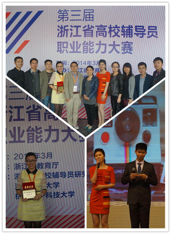 3月26日,由省委教育工委宣教处主办的浙江省第三届高校辅导员职业能力大赛总决赛在杭州电子科技大学举行。我校艺术学院辅导员陈洋从40名参赛选手中脱颖而出,荣获二等奖。我校英语语言文化学院辅导员邱萍担任了本次大赛的主持人。 来自全省32所高校的40名辅导员参加了总决赛。决赛由基础知识测试、自我介绍与工作展示、主题班会、案例分析、主题演讲、谈心谈话等五个环节组成。整场比赛精彩纷呈,充分展示了各高校优秀辅导员的风采。 学生工作部组织我校辅导员职业能力大赛获奖辅导员一起观摩了整场比赛。