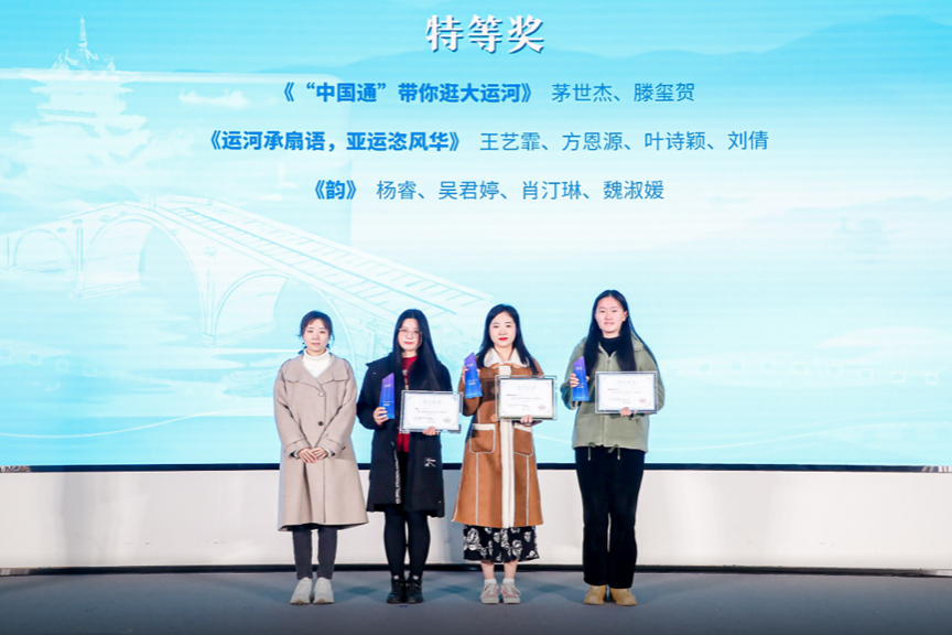 在“UP!我的新时代·SHU说大运河”——“迎亚运盛会 展运河古韵”短视频大赛中,我校王艺霏团队作品《运河承扇语,亚运恣风华》荣获特等奖,谭欣团队作品《运见拱墅》荣获一等奖,另有5项作品荣获二等奖,13项作品荣获三等奖。文旅学院周晓晶,商学院、创业学院陈星宇两位同学凭借作品《武林十二时辰》荣获“青年拍客”荣誉称号。周晓晶作为青年拍客代表,现场分享了作品的创作过程。