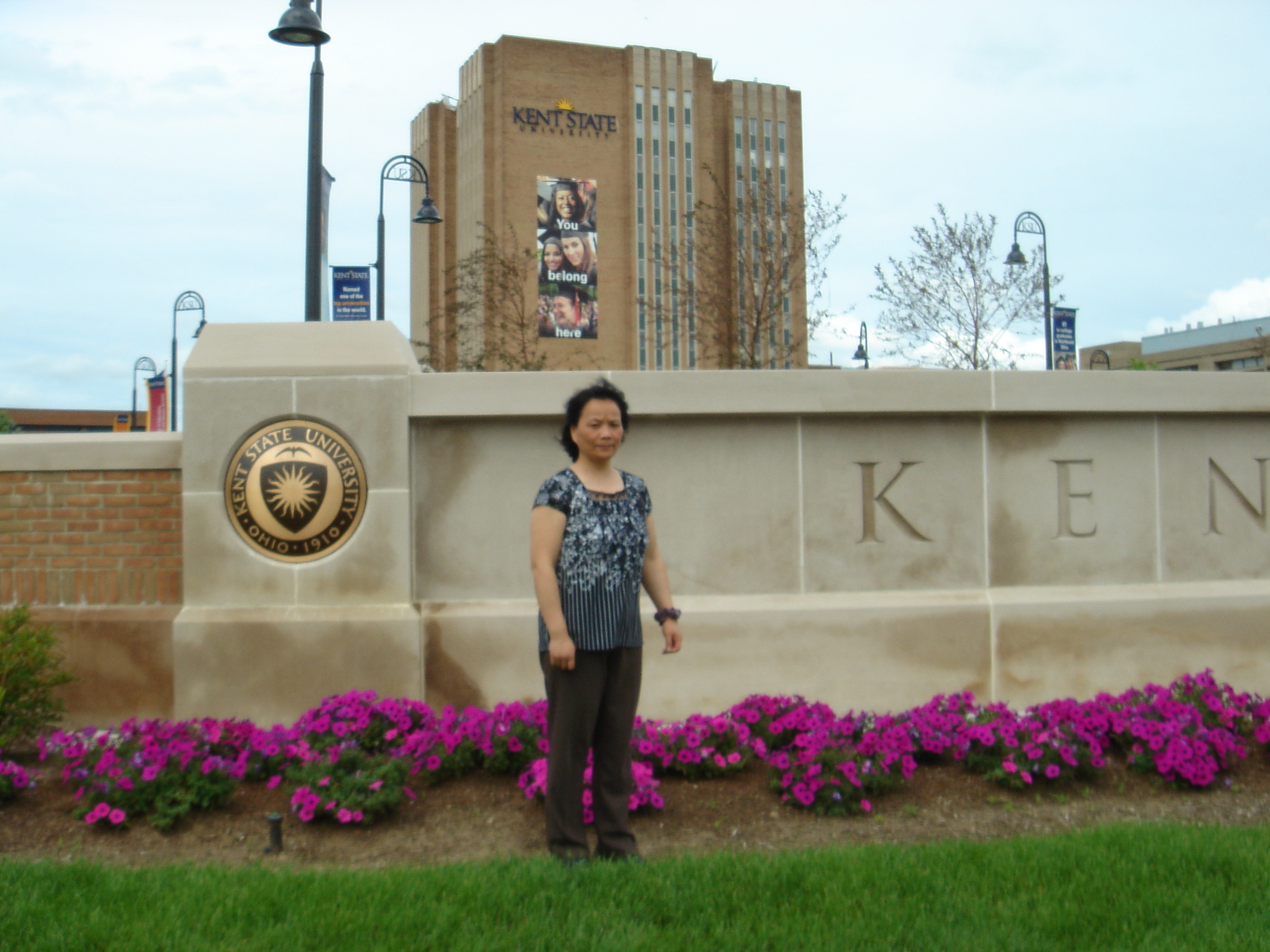 2013年4月,王老师由国家留学基金地方合作项目资金资助公派前往美国肯特州立大学进行访学。在美国,参与了肯特州立大学黄颂平教授课题组的纳米材料合成及应用方面的部分研究工作。出国前在浙江大学药学院主要从事的是金属催化下有机合成反应方法学的研究实验工作。在美之所以选择研究纳米材料的应用主要是利用美方学校纳米材料的研究优势,想通过制备纳米级的金属配合物作为催化剂,将纳米催化剂应用到有机合成反应的方法学研究中。王莉老师特地介绍了她的打算:“纳米是一个新的研究领域,我去国外学习主要是想接触、了解这个领域的研究进展,搞清楚纳米的制备技巧。”王老师还就纳米材料的具体应用作了进一步解释,尤其在促进现代医学发展方面特别引人瞩目,“比如说以四氧化三铁为载体的纳米级重金属解毒剂,在医学上有重要的应用,因为普通尺寸的重金属解毒剂无法进入人体,把它做成纳米级,利用四氧化三铁的磁性,可以方便的引入到所需的区域,有效清除血液中的重金属离子。”她表示听起来可能很复杂,在日常生活中的应用却很常见,包括核磁共振造影剂等。目前,纳米级治癌靶向药物是热门的研究领域之一。